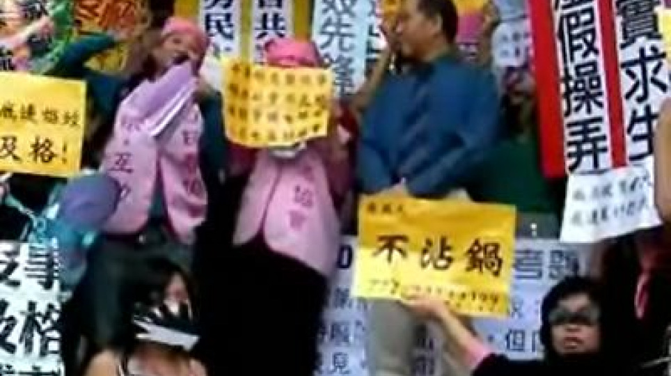 譴責立委成為吃錢大怪獸,公民團體前往立法院抗議