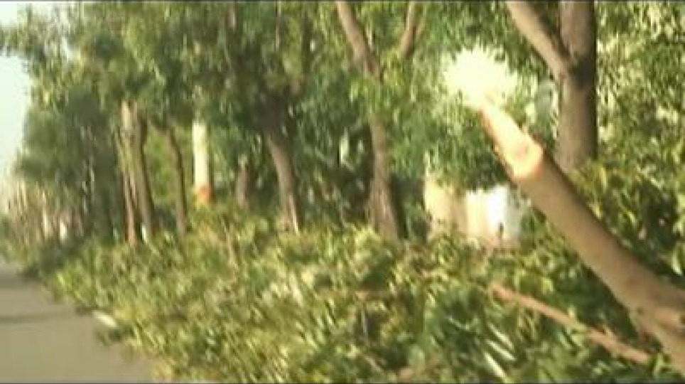 日夜佔用機車道的施工