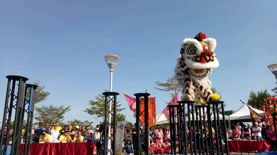 醒獅高樁競技在田中 彰化高鐵站區熱鬧登場