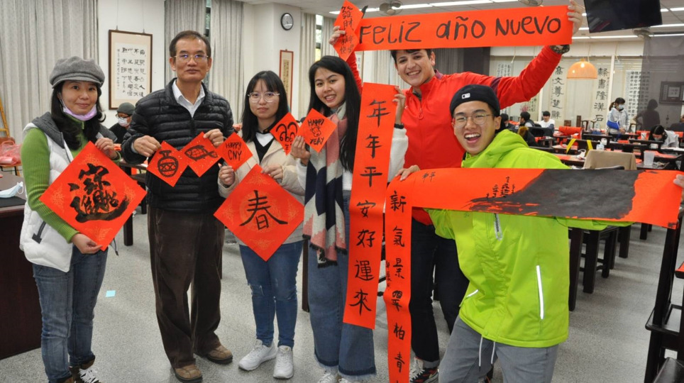 明道大學外籍生寫春聯 體驗中華文化底蘊